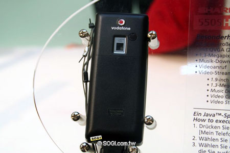 相機的鏡頭依舊是在背面,320 萬畫素 CCD 的高畫質相機,搭配了 2 倍光學變焦以及自動對焦,拍照效果就和前代的 903SH 一樣令人讚嘆!這次的 Vodafone LOGO 在手機的背面,還有些人打趣的說台灣版上市時,不會再像 WX-T91一樣正面被挖洞了。