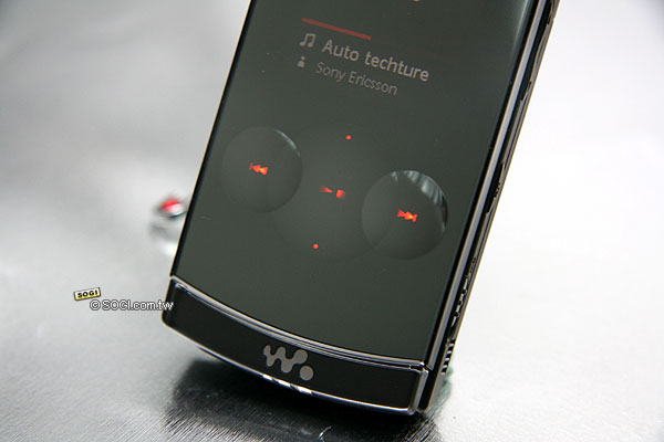 W980 在上蓋的部份,可以說是 Sony Ericsson 手機近期難得一見的新外貌,強調 Walkman on Top 的理念,從上蓋的外螢幕和觸控鍵,就可以操控音樂,不需要打開上蓋就能聽歌。上蓋是黑色的鋼琴烤漆,雖然拿在手中的質感真的優,但這種材質仍脫離不了指紋的沾染,SOGI 於拍攝期間也是擦個不停。