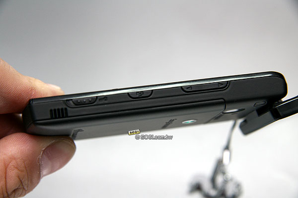 ▲ 右側依序為 Hold 外螢幕上鎖鍵、外螢幕功能切換鍵 (可切換外螢幕待機、Walkman 和 FM Radio 三種外螢幕功能)、音量調整鍵。而左右兩邊都有喇叭孔,W980 的外放音樂屬於相當清澈又大聲型的,怕吵的話別忘了降低來電音量。