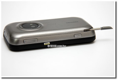 機身右側則具有音量調整鍵、相機快捷/快門鍵與觸控筆插槽;左側則配置了耳機孔、miniSD 記憶卡擴充槽與吊飾孔。