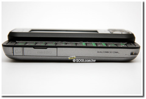 相較於前面介紹的手機正反面,G900 在機側四面配置就較為簡單,頂部僅設有電源開關(開機狀態時可關閉螢幕節省電力),與電池背蓋卡榫;底部則是標準 miniUSB 傳輸埠,不過僅支援 USB 1.1 規格,未達 2.0 高速傳輸等級。