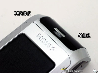 philips xenium 9@9e 在設計上,兼具簡單俐落與時尚品味,除了操控順手的人體功學貝殼式機體設計之外,在背面,還鑲嵌了獨特而優雅的真皮飾板(上圖可點圖放大仔細欣賞品味),精緻品味由此可見一斑。