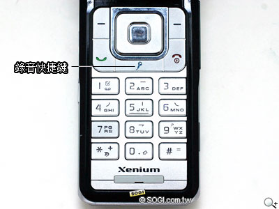 上圖是 philips xenium 9@9e 手機的操作按鍵圖,為了搭配其方正的機身,在按鍵設計上,當然也要以方正的形貌現身。另外,為了突顯其商務功能,philips xenium 9@9e 手機特別把商務人士最常用到的錄音功能,設計了一個錄音功能之快捷鍵,方便商務人士隨時使用。
