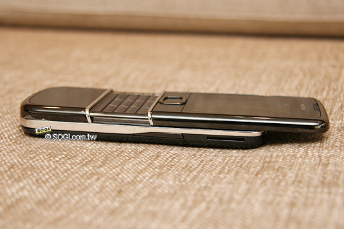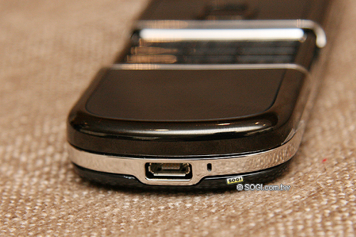 擁有簡潔俐落外觀設計的 Nokia 8800 Arte,在快捷鍵的介面設計上並不多,機身底端的 micro USB 傳輸孔介面,可讓用戶隨時與電腦連接傳輸數據。