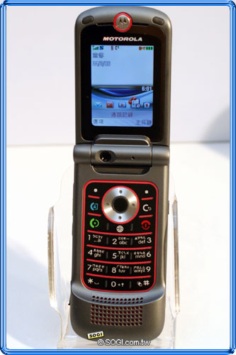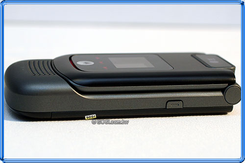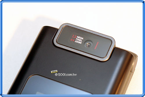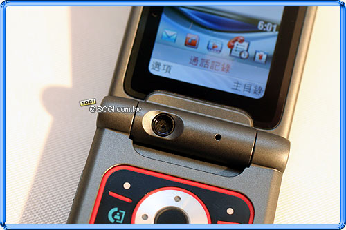 與 maxx V3、V6 相同,在轉軸上嵌入了視訊鏡頭,是 MOTO 最近幾款 3.5G 手機的標準設計。視訊通話鏡頭為 30 萬畫素,還可以用來自拍。