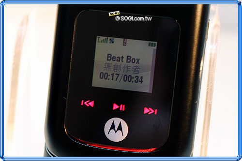還記得 maxx V6 的藍色冷光隱藏式音樂播放鍵吧!maxx V1100 則採用紅色冷光的音樂觸碰式感應鍵, 輕觸即可播放、前進、後退音樂。只可惜外螢幕亮度上非常的黯淡,也是 MOTO 折疊機有待改善的缺點。
