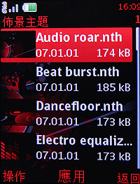 快速鍵的部分,直接將導航鍵中央設計為「播放、暫停」的音樂操作,更能符合 Nokia 5610 XpressMusic 的賣點。而且,新設計的「滑梭式音樂軸」位於快捷鍵與螢幕之間,往左、右推頁面就會自動翻頁,將 iPhone 與阿福機的翻頁模式,改為按鍵操作,一樣方便十足、噱頭十足。