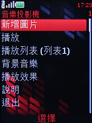 除了內建的標準 MP3 音樂播放器之外,Nokia 5610 還特別建置了音樂快捷列表,將手機內與音樂有關的功能集合在同一個功能列表中。從螢幕圖中,可以看到音樂投影機、音樂網站 ...,甚至是另一個可顯示歌詞的 Lyrics Player 音樂播放器。