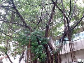 有主題的戶外景象,榕樹的氣鬚密密麻麻,Nokia 5610 在顏色上的表現維持在水準之上。清晰度方面,下方距離較近的氣鬚根根分明,上方較遠的氣鬚部分有模糊,但整體而言仍在可接受範圍內。另外,拍攝繡球花叢也有這樣的情況,而且花朵顏色稍偏紫,色彩冷調比較不討喜。