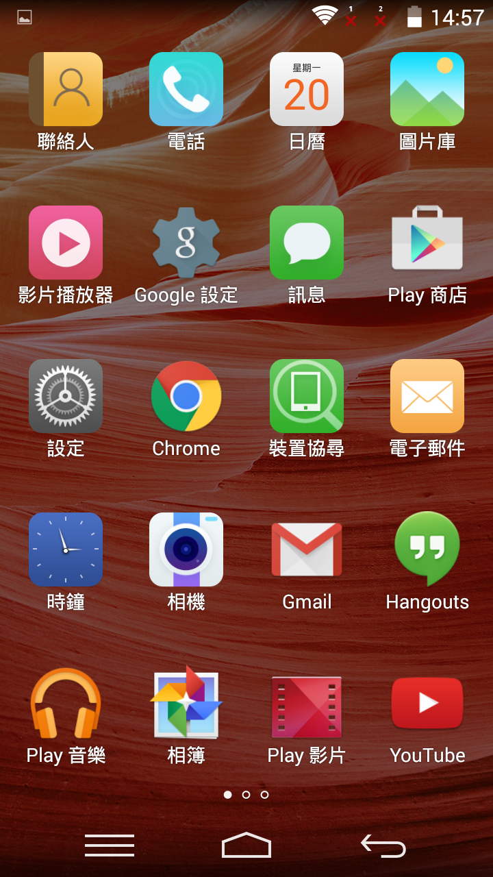 ▲InFocus M350 最多能新增至 18 個桌面,每頁採 4 x 5 空間配置,下方常用功能列可放置 5 個 App。