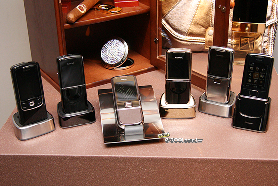 由左至右 : Nokia 8600 Luna、Nokia 8800 Sirocco、Nokia 8800 Sapphire Arte