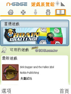 遊戲方面和 N85 一樣,也同樣搭載了 15 款的 N-Gage 試用版遊戲,要執行前必須先安裝才能夠玩,安裝前會跳出選擇安裝位置的視窗,建議使用者安裝到記憶卡裡面,才不會佔用手機太多空間而拖累速度。必須提醒的是,標準包裝中還有一個啟用碼,輸入啟用碼便可啟用一款 N-Gage 遊戲,記得要選擇自己喜愛的款式,免得白白浪費了!而正式上線的 N-Gage 平台,使用者可以和手機遊戲社區 N-Gage Arena 中的玩家連線,或是利用藍牙進行連線對戰。
