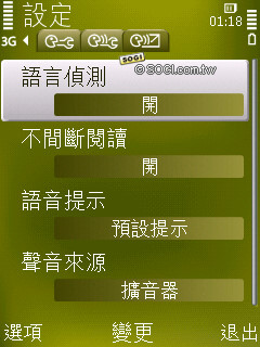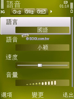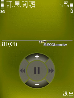 部落格也是時下年輕人非常重視的功能之一,N79 預設 4 個部落格網站連結,介面簡單易懂,只要輸入個人帳號密碼即可登入。訊息閱讀器的操作也和 N85 一樣,開啟後會自動將訊息內容一則一則的唸出來,設定功能相當多元,能夠選擇語言、語音、速度、音量、語言偵測、不間斷閱讀……等。比較可惜的是語音種類只有原本預設,無法選擇。