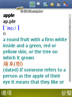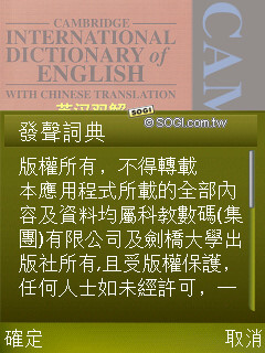辭典和發聲辭典讓使用者可以利用手機學習英文,隨時查詢不懂的單字。此外,發聲辭典具備發音功能,對於不熟的單字還可直接加入生詞本,字典也內建了測驗機制,例如:單詞測試、選詞填空和猜詞遊戲,能夠有效提升你的語文能力。