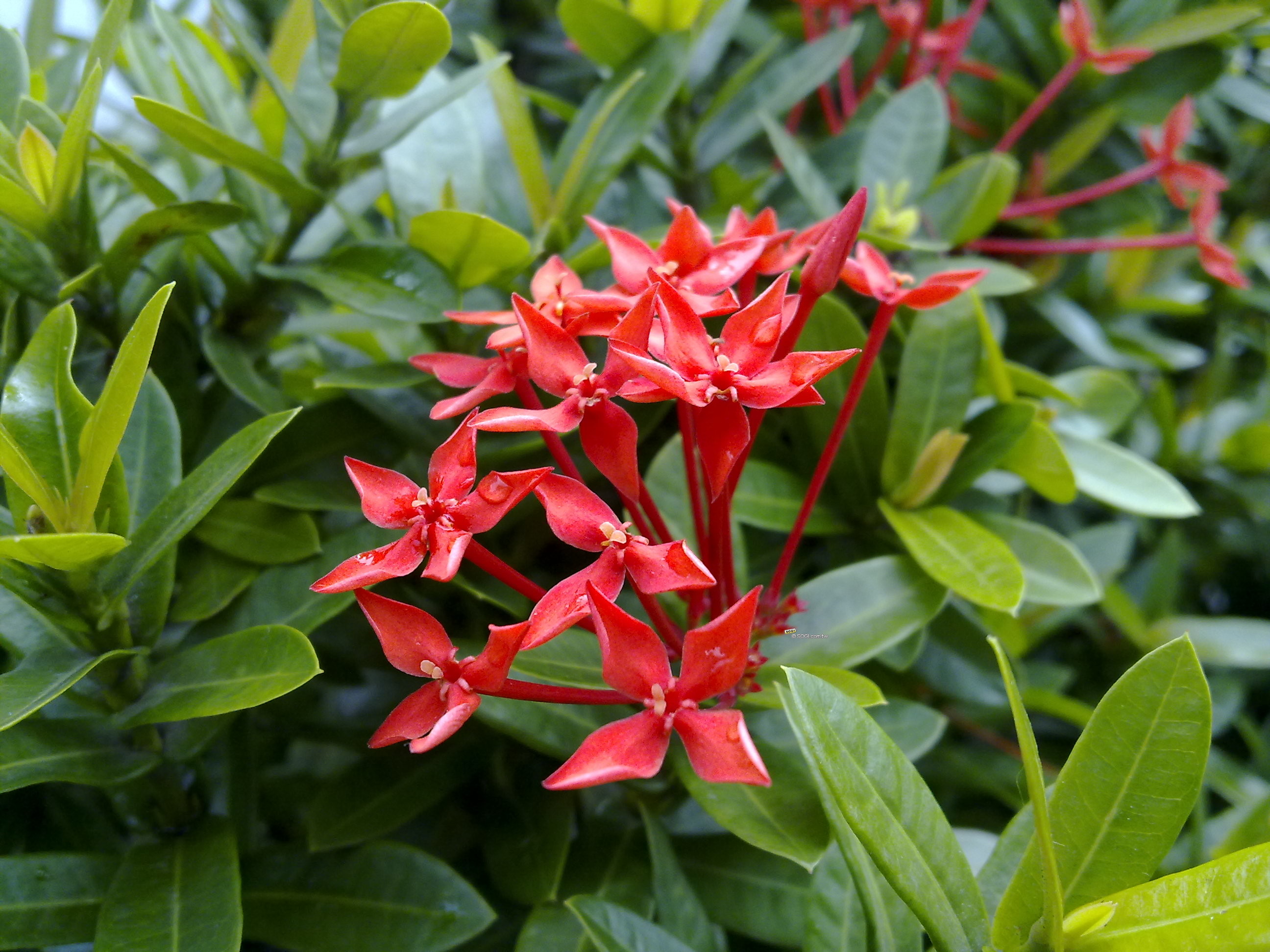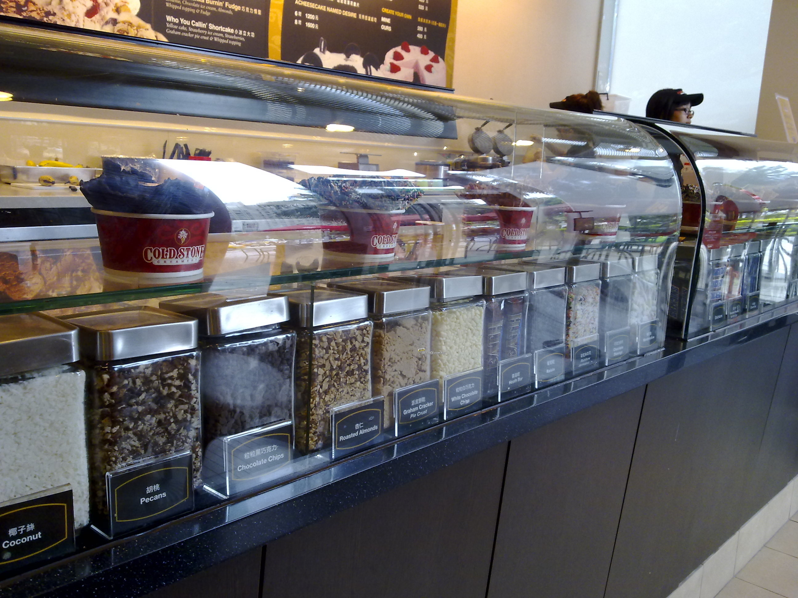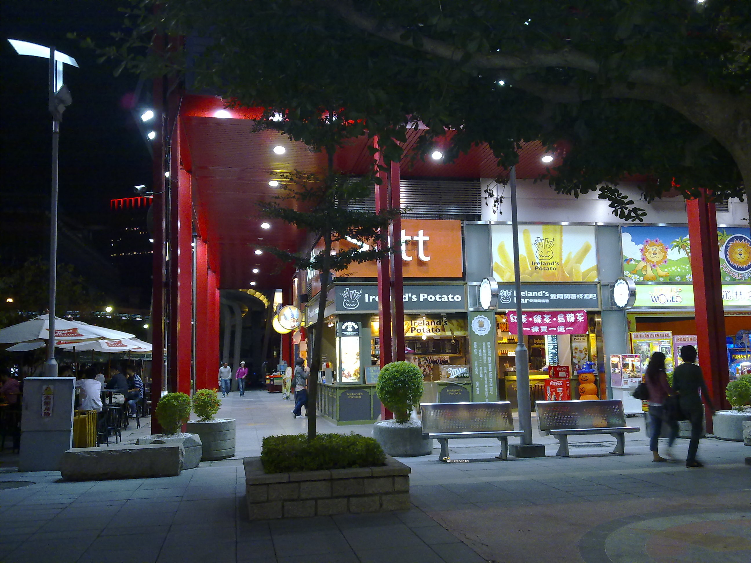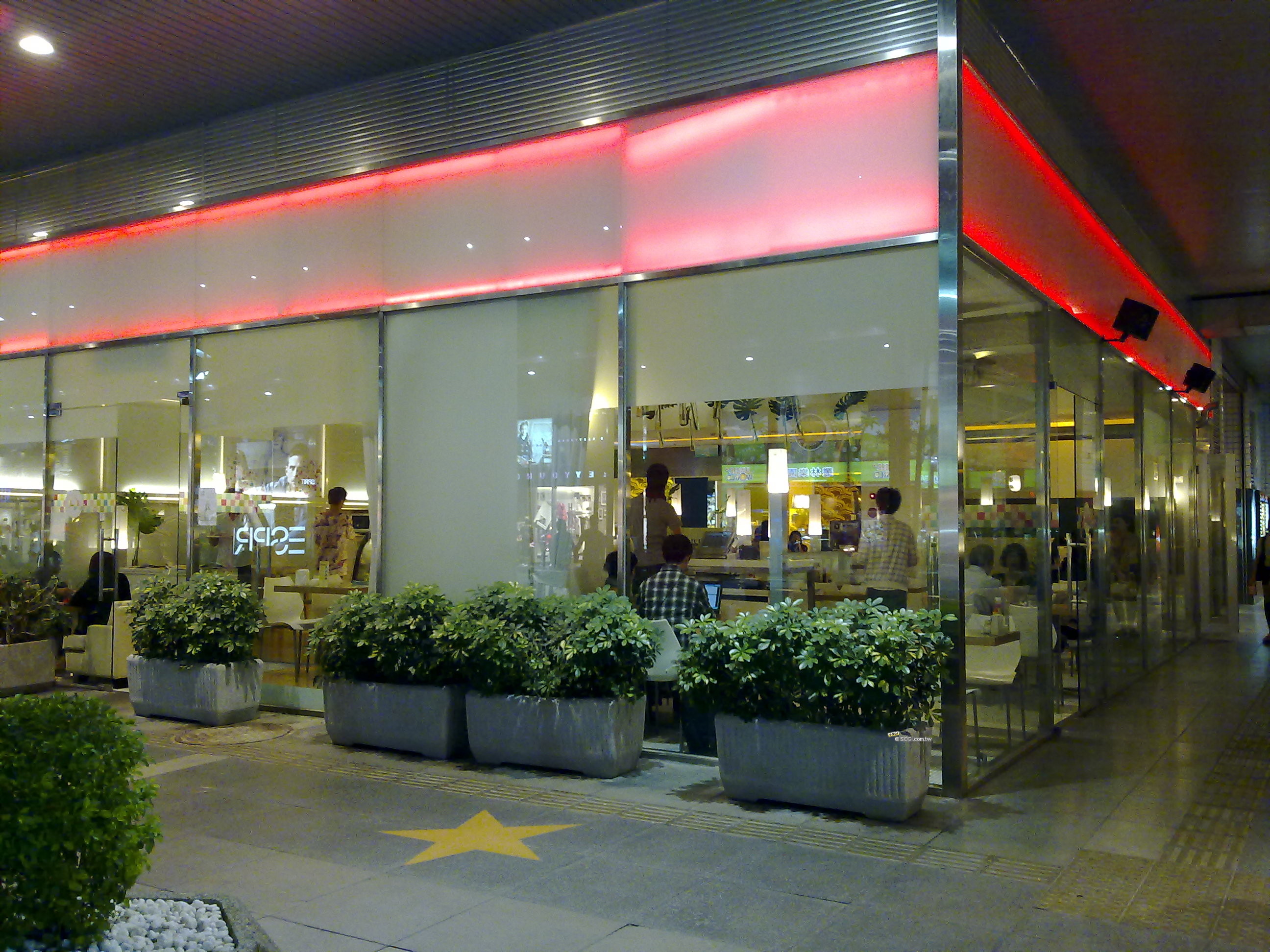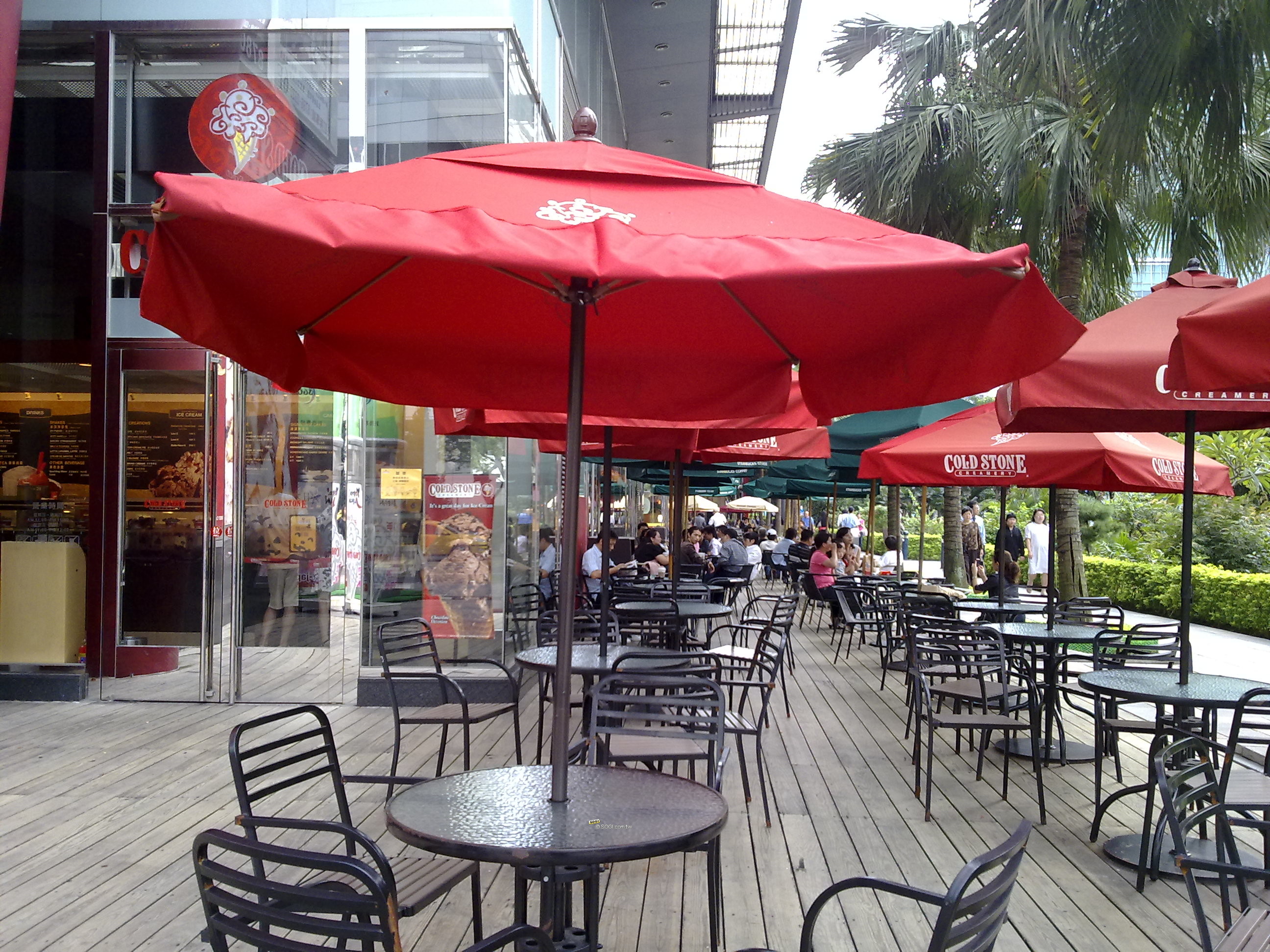 此圖為美國品牌冰店外面的露天座位,其頂端的紅色大傘顏色鮮豔、自然,表現不錯。