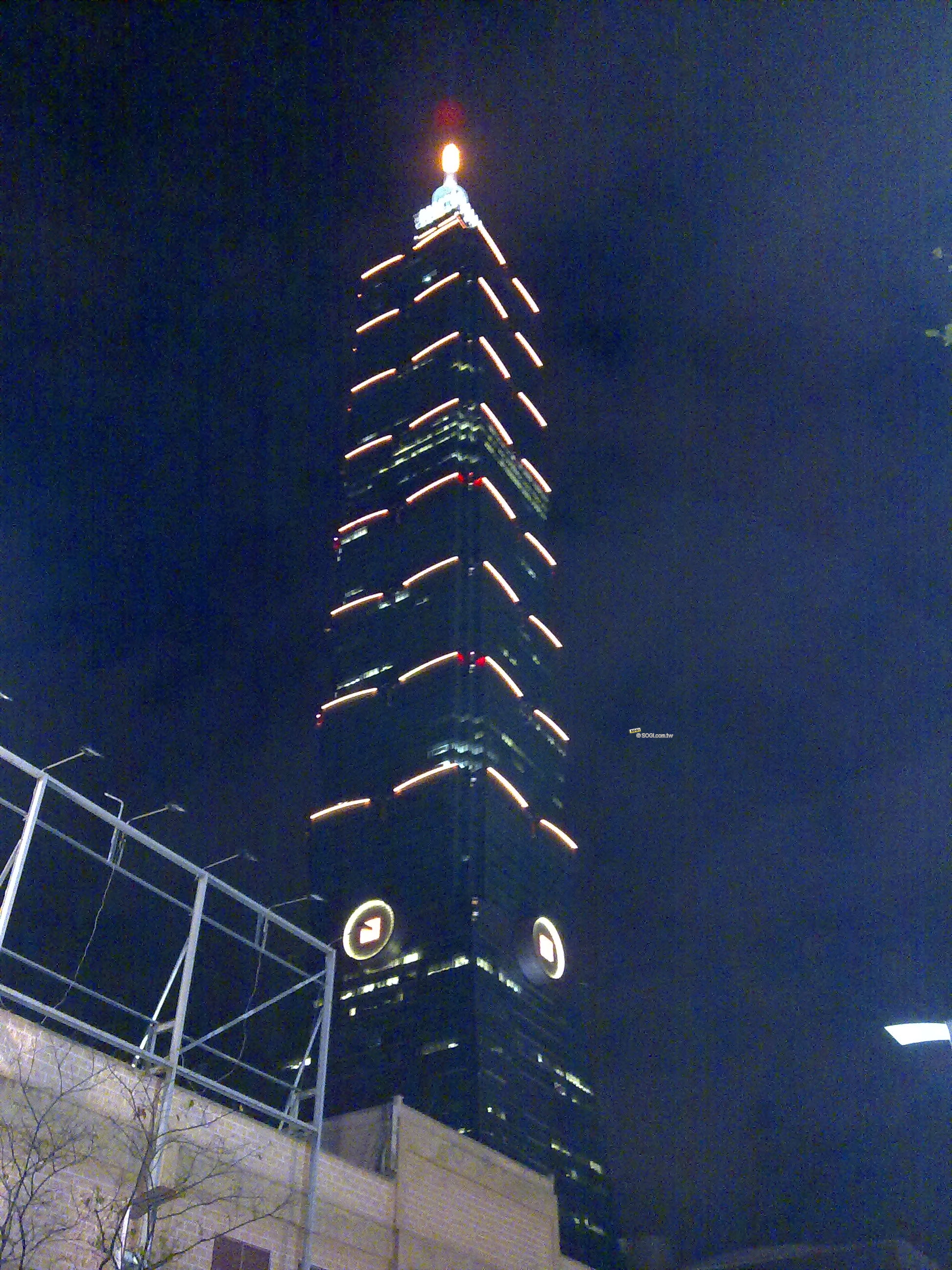 夜拍的確稍微遜色了一點,雖然在手機的螢幕中看起來相當不錯,可是一放到電腦中便馬上出現問題。尤其是以仰角拍攝 101 大樓,畫面的顆粒變得十分粗大,不夠精細,但夜拍也是所有照相手機和消費型相機的最大致命點。N79 在有光源的地方,夜間的效果就都還可以接受,沒有太嚴重的失誤狀況。