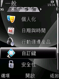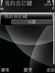 在功能快捷鍵的部份,很多人看這圖式應該會跟編輯一樣誤會是導航快捷鍵 ( 很容易受到 Nokia 6110 Navigator 機身上的鍵盤符號刻板印象所影響 ),但特殊的是,Nokia 6220 classic 此顆功能快捷鍵是可允許自由設定的,如下圖螢幕設定圖所示。