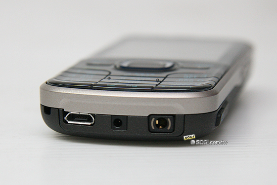 上圖是 Nokia 6220 classic 機身尾端介面設計,分別是 microUSB 傳輸孔、充電器插孔與令人遺憾的 2.5mm 音源插孔 ( 可插耳機與 TV-Out 傳輸線 )。