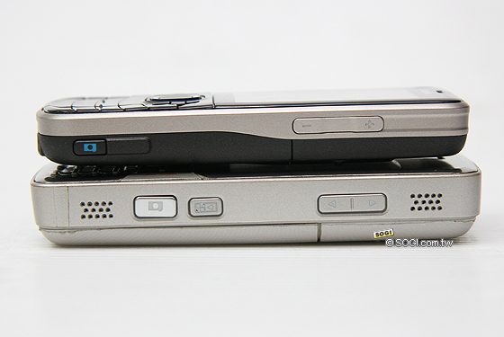 ▲ 側邊可以發現 N82 擁有二個喇叭,而 Nokia 6220 classic 則將喇叭孔移至頂端