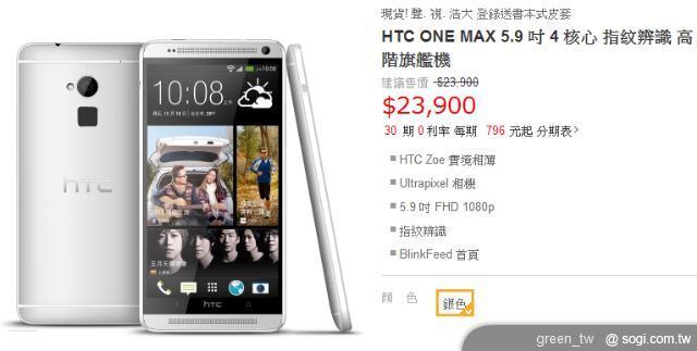 HTC One max價格公布!16GB售23900 10/23開賣