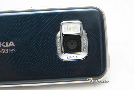在機身背面則是 320 萬畫素自動對焦相機,鏡頭上方還設有一個 LED 閃光燈,可輔助拍攝更清晰明亮的影像。此外,在電池蓋的設計上,近期頗受諾基亞喜愛的線條圖騰設計,此次也大大的反應於 N78 上。
