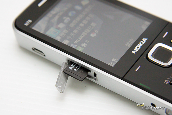 在 microSD 記憶卡方面,購買 N78 的用戶將會隨包裝免費獲得一張 2GB microSD 記憶卡,在擴充度上,經由實機測試 N78 可支援到最大 8GB 的容量。
