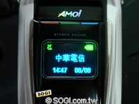 AMOI T900 採用 OLED 的外螢幕,其優點是省電,缺點是在太陽光底下看的不太清楚。T900 的外螢幕為 3 色 OLED,尺寸高達 1 吋,無論是瀏覽來電資訊或是觀看時間,都相當的清楚。