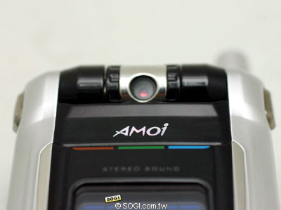 AMOI T900 在轉承軸的中央,備有 130 萬畫素 CMOS 相機,不僅可以用來拍照取景,在進行視訊電話的時候,將其轉到內側就可和好朋友進行視訊通話。