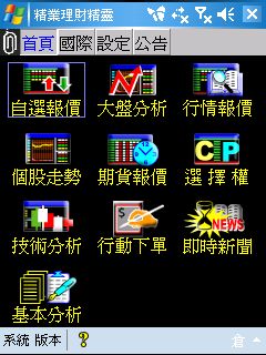 ASUS P535 盒裝附贈的光碟中,附有精業理財精靈。灌好程式之後,即可立即以手機掌握股市資訊,商務人士的必備武器。