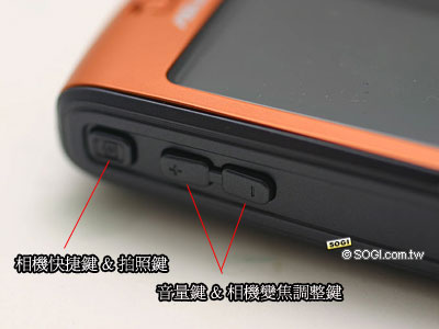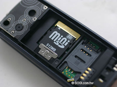 上圖是 ASUS V66 手機之機身右側,在上面印著一個音符與一串英文字母符號,似乎在強調著它的 MP3 音樂播放器之功能,是手機也是一台可擴充記憶容量的隨身 MP3 音樂盒!