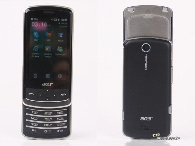 ▲Acer beTouch E200 採用滑蓋機身設計,在 PPC 手機界並不是很常見。