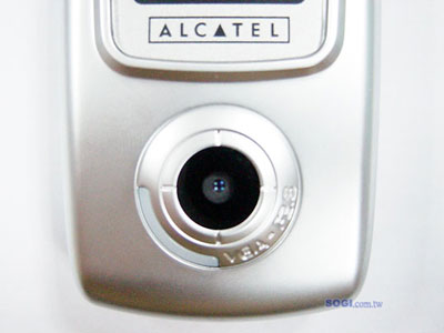 OT835內建的30萬畫素照相鏡頭擺在外螢幕之下,圓圓黑黑的,乍看之下還真有點突兀,還好鏡頭的周圍加了來電訊息燈,紅色、藍色、紫色交替閃爍,為OT835增添了幾分時尚感。
