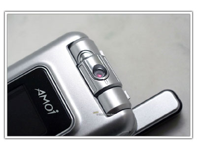Amoi 系列的 3G 手機,共通的設計便是旋轉鏡頭,不但節省了兩個鏡頭的空間以及成本,在使用者的內外鏡頭切換過程也不需要另外設定,只要把鏡頭推出推內便可。BV1000 搭配的是 130 萬的 CMOS 相機,可惜的是沒有搭配補光燈,在光線不足的地方,便沒辦法取得滿意的照片。