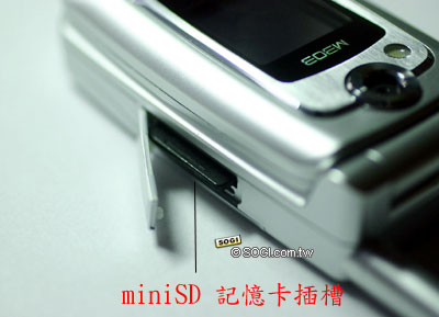Asus M303 的 miniSD 卡插槽,就在手機的右側,支援熱插拔相當的方便,不需要關機、也不用做退除記憶卡的動作。