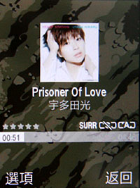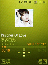▲ Samsung Soul U908 的音樂播放介面,較特別的是可以隨著自製主題而改變背景圖案。