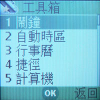 工具箱內有個自動時區功能,剛好給予時常出國的人,只要網路漫遊到不同時區便會將時間調整為正確的時差,人還沒調好時差,手機便已經調整好了,相同的月曆、計算機這些普通手機都不可缺的功能當然沒缺席。