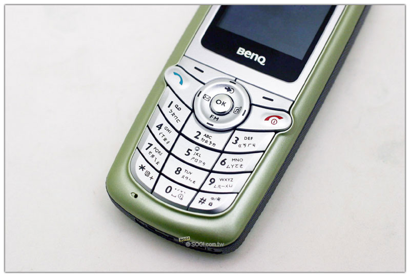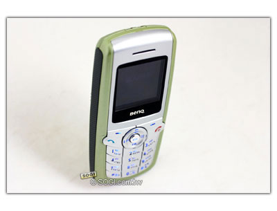待機畫面跟一般的 BenQ 手機一般,按掛斷鍵可以隱藏功能列和系統商 Logo ,方正的螢幕顯示的東西雖簡單卻很清楚。選單畫面呈現九宮格方式並對應數字鍵。