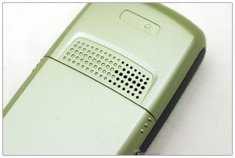 看到機身背面的揚聲孔就可以知道,又來了一支「大聲公」!BenQ M220 支援 16 和弦鈴聲,總是不輸給一般 MP3 手機,內建的鈴聲有可愛型的也有基本型的,中小學生、菜籃族用非常合適!