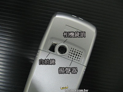 BenQ M315 除了具有簡單俐落的直立外型之外,它同時是一款多功能的照相手機,BenQ M315 內建 10 萬畫素數位相機,相機鏡頭置於手機機身後面,在鏡頭的旁邊還設計了一小塊的自拍鏡,對於喜歡沒事就自拍的消費者來說,非常實用。此外,在鏡頭旁邊便是 BenQ M315 手機的立體揚聲器,播放的音質效果亦非常清晰。