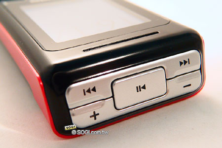 『因為「上寬」,才能容納下音樂播放按鍵的存在』。從上圖中,可以明白的得知為什麼 E61 會有上寬下薄的外型設計了。BenQ-Siemens E61 的音樂播放操作介面設計於機身上方,根據原廠表示,設計在上方的用意除了獨特之外,另一個作用則是,當消費者把手機放在口袋裡欣賞音樂時,可避免不小心去觸碰到按鍵...