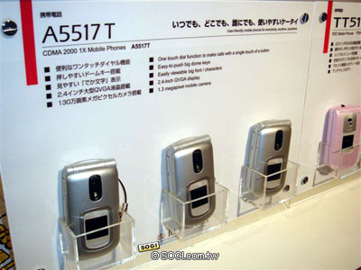 東芝展示了與 KDDI 合作的成果,並放置多款試驗機讓觀眾見識,還以 au 的『A5509T』為實驗對象,開發燃料電池手機,預計於 2008 年可完成小型化兼實用化的成品,實際上市並廣泛應用指日可待。東芝所展示的 2.4 吋 VGA(480x640 dots)液晶,以Vodafone 902T...