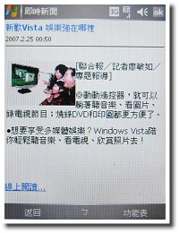 CHT9100 由於是宏達電針對中華電信所設計的客製化手機,所以在 CHT9100 上可以看得到如 RSS 即時新聞等最新資訊。