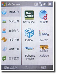 在「My connect」裡,則有許多網站的網址快速連結服務,可以連結各合作網站,也能從上面下載佈景主題與鈴聲。