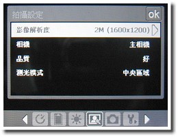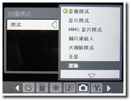 在拍攝模式上就顯得多樣化許多,從靜態影像模式,到圖片聯絡人模式、大頭貼模式、運動、全景模式,還有針對 GPS 的相片導航模式,相當多樣化。由於拍照時是以橫向方式攝影,因此所有的設定狀況都會顯示在橫向螢幕上,並可直接在螢幕上點選。