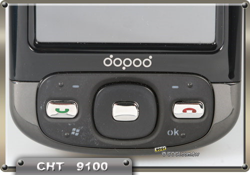這次的 CHT9100 改成一般正常的直立式設計,所以看不到前一款的滑蓋式 QWERTY 鍵盤,不過機身也不再那麼厚,除了接聽撥打鍵外,另外還有方向鍵及快速鍵設計。