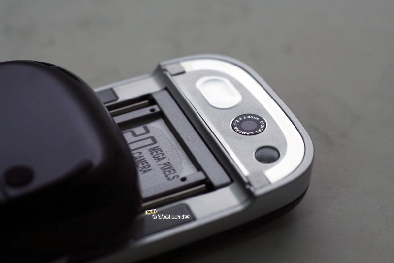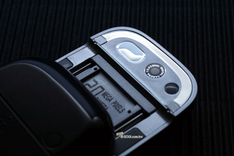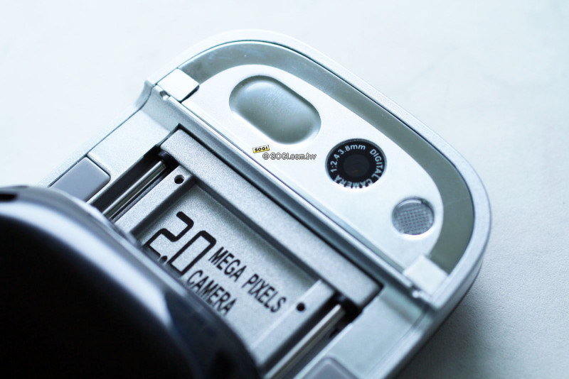 雖然現在200萬畫素照相手機已經不是什麼稀奇事,但仍然有一定的吸引力在,鏡頭旁邊有自拍鏡跟閃光燈設計,但小編在選單裡怎麼找就是找不到閃光燈的選項,而另外一件有趣的是,不知道是不是怕大家不知道C5888是200萬畫素手機,在機身前後都印上了「2.0MEGA PIXALS CAMRA」的標誌,好啦!大家知道你有200萬畫素啦!