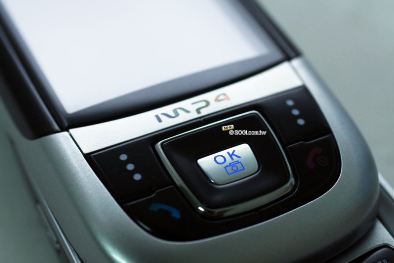 在按鍵跟功能鍵的設計上,與一般滑蓋手機差不多,按下去的觸感還算有中等水準的表現,而五方向功能鍵中間的按鍵可以直接進入相機,不過對大手族而言卻不怎麼順手。
