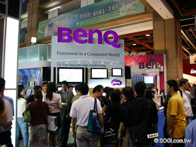國內知名大廠 BenQ 此次在展區分門別列的展出許多旗下的各階層手機,完整的高、中、低階規格手機線一次全部列出來給參展者過目,在此攤位,可以看到的手機有 A520、Qube Z2、M315、M350、P30、P50、S80、S500、S700、U700 等各式各樣階層的手機,其中比較引人注意的還是一些目前尚未上市的高檔手機,例如 P50、S80、S500、U700。在下一頁中將會有比較完整的介紹。