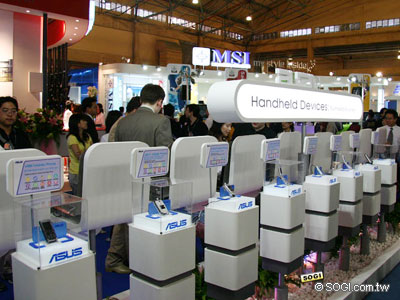今年參展廠商陣容浩大,台灣知名大廠包括宏碁、威盛、鴻海、大眾、華碩、技嘉、微星、精英、神達、大同、華宇、東元、中環、明碁電通、錸德、新寶科技,以及國際性大廠 Intel、AMD、全美達、Microsoft、德州儀器與美國國家半導體及 Broadcom 均摩拳擦掌,準備一較高下。以下手機王將針對與行動通訊產品相關的攤位簡單介紹。