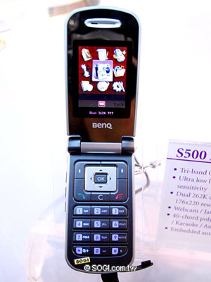 BenQ S500 支援 GSM 900 / 1800 / 1900 三頻系統,內建 130 萬畫素相機與支援 1.8 吋 26 萬色 TFT 彩色主螢幕,在外螢幕規格上,BenQ S500 則是具備了 1.2 吋 26 萬色彩色螢幕。此外,BenQ S500 與之前所推出的 A520 一樣具備了 Webcam 功能。另外,BenQ S500 還支援 40 和絃鈴聲、GPRS 無線上網、Java、紅外線傳輸...等功能。
